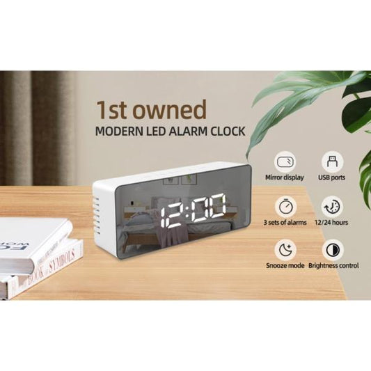 Horloge miroir numérique réveil de table, horloge de bureau avec date, heure, température, plastique blanc